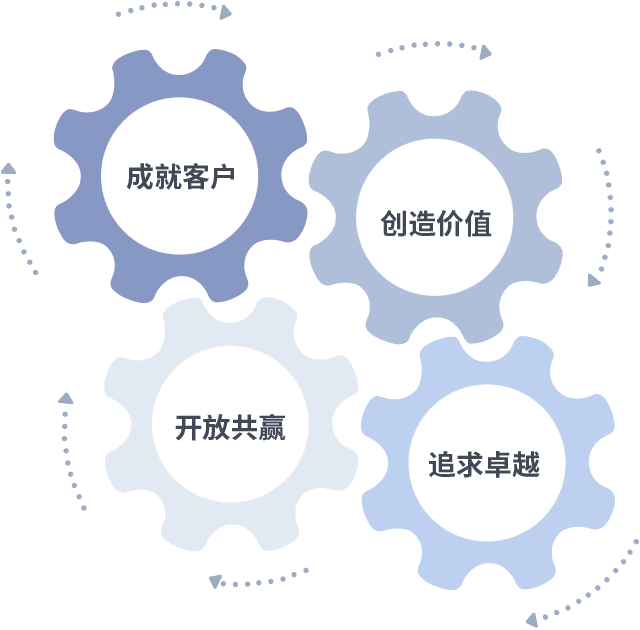 成就客户是一切决策的出发点,,,,创造价值是衡量所有工作的标准,,,追求卓越是雷火电竞做事做人的态度,,,,开放共赢是雷火电竞的格局也是最终的结果。。。。价值观的齿轮环环相扣,,推动着组织里的每个人不断向前。。
